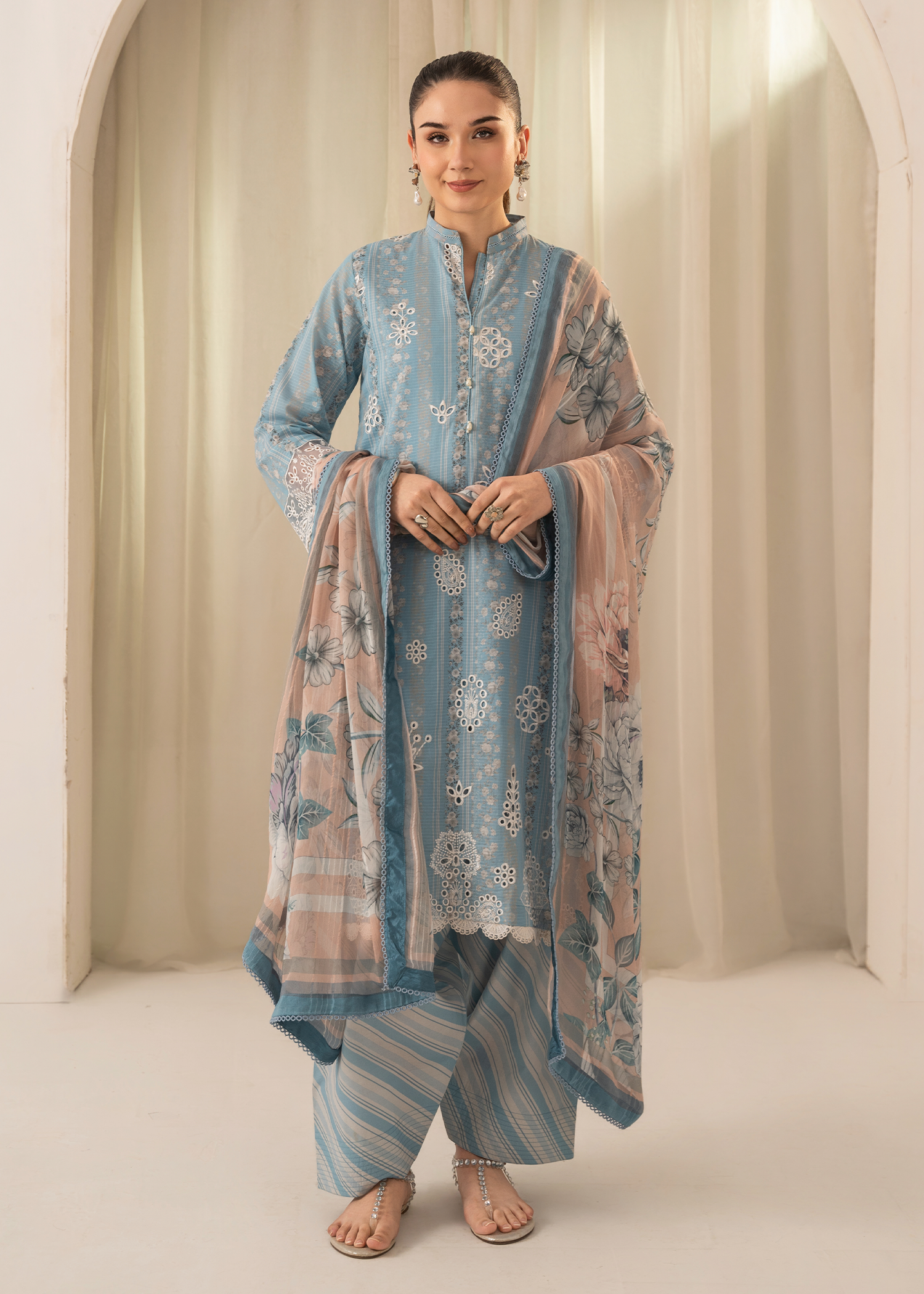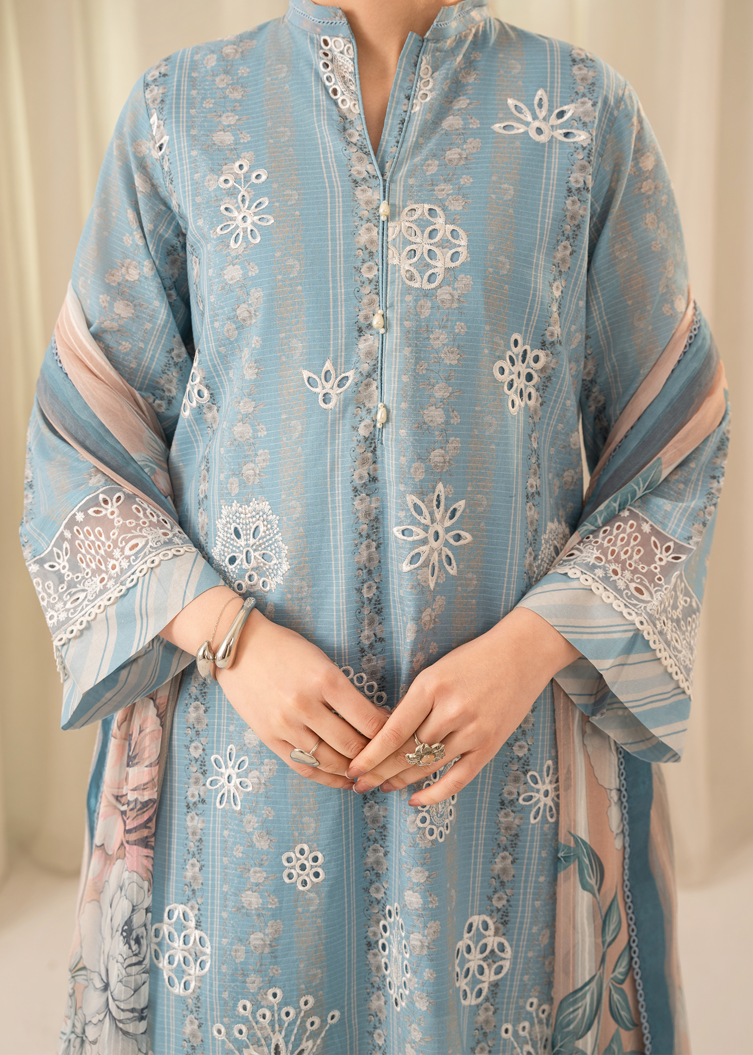 Front: Embroidered Chikankari on Digital Printed Dobby Lawn (1 PC)