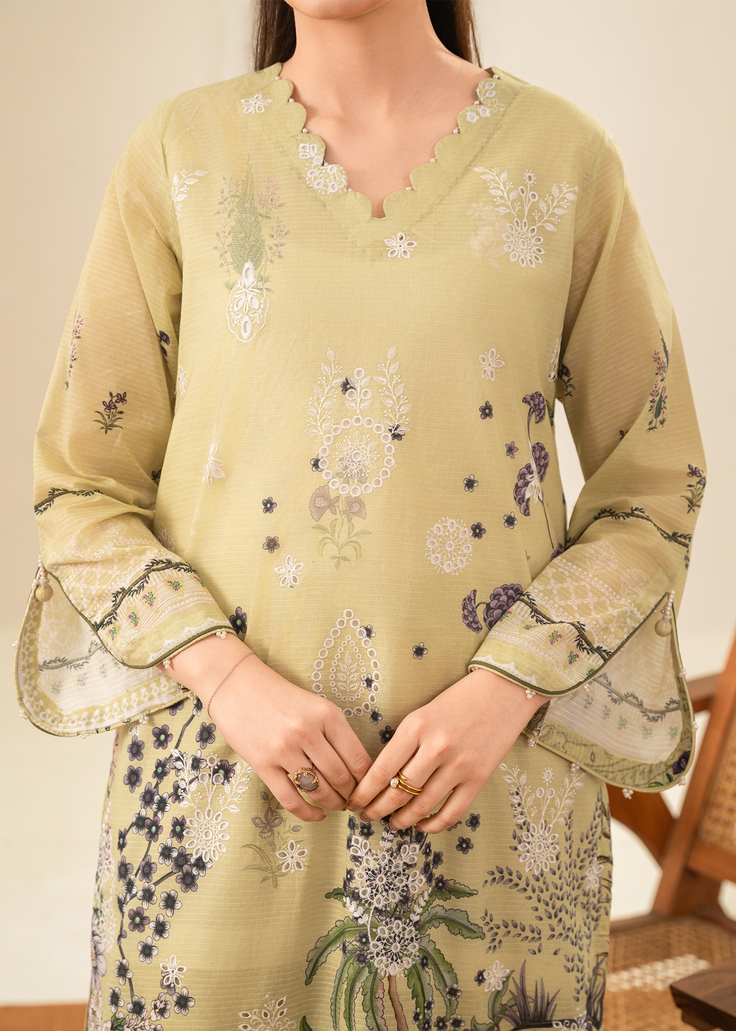 Front: Embroidered Chikankari on Digital Printed Dobby Lawn (1 PC)