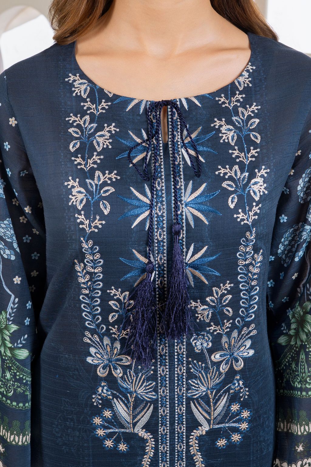 Embroidered and Printed Slub Lawn Shirt
