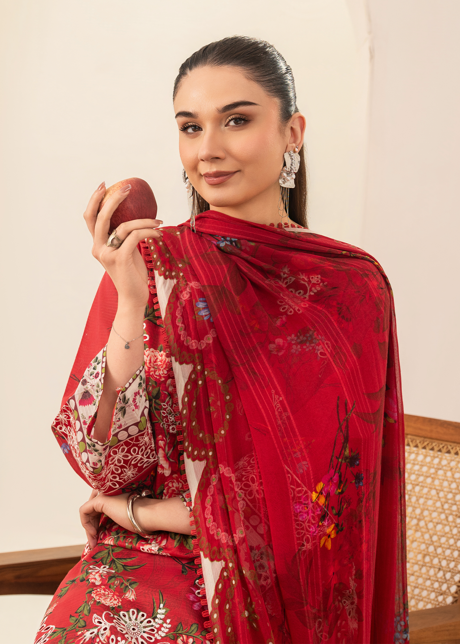 Front: Embroidered Chikankari on Digital Printed Dobby Lawn (1 PC)