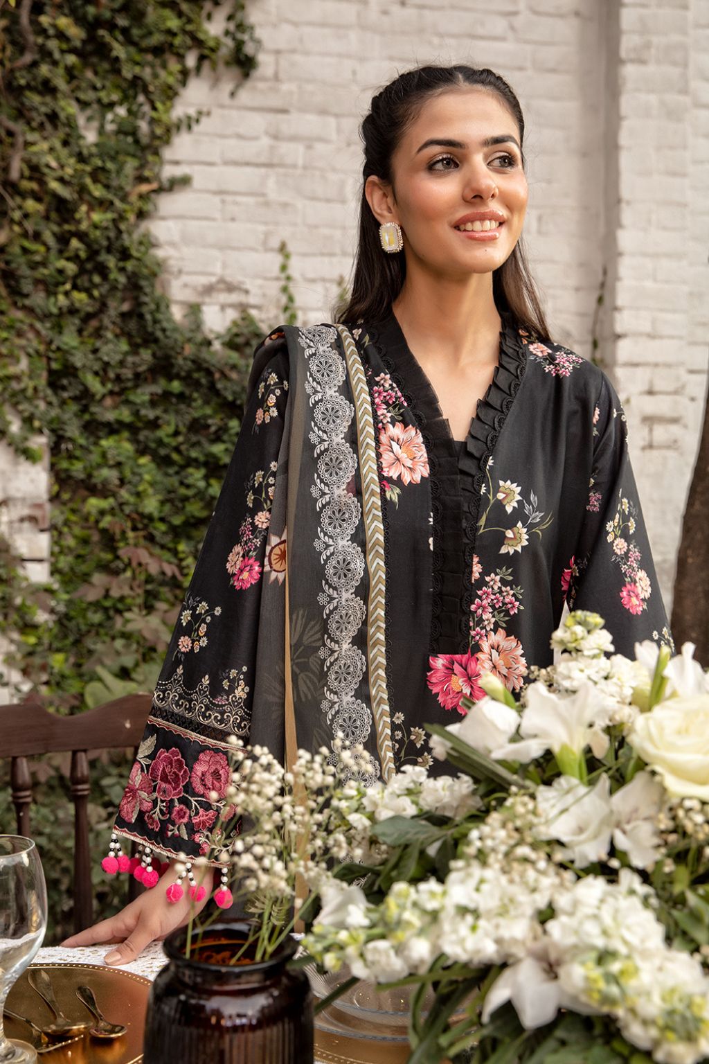 Shirt: Embroidered with chikankari detailing on premium lawn fabric.
