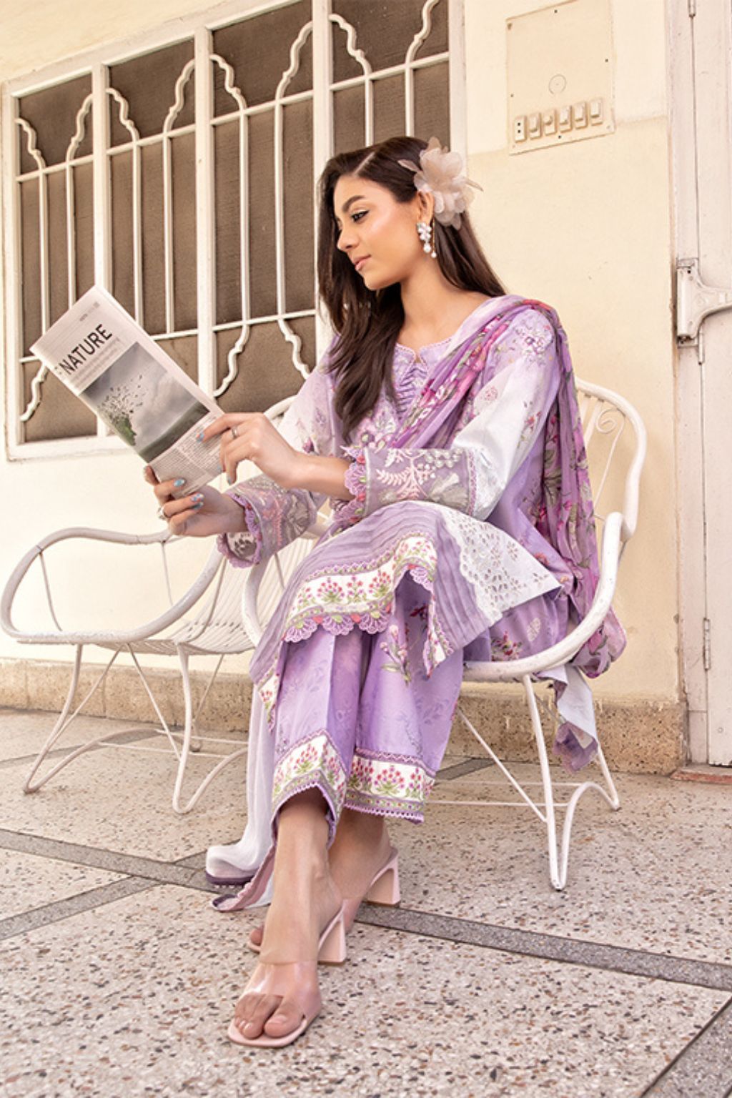 Shirt: Embroidered with chikankari detailing on premium lawn fabric.